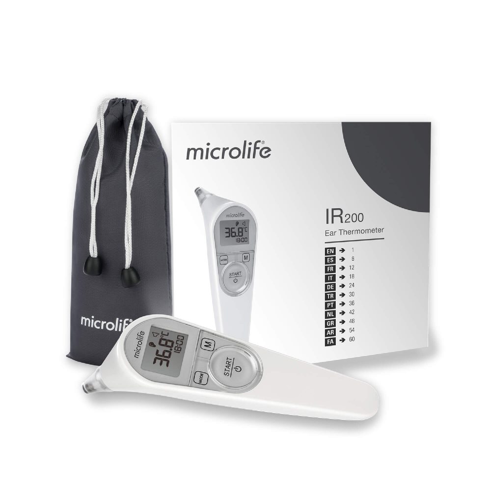Microlife IR 200, vücut, nesne ve ortam sıcaklığını sadece 1 saniyede ölçmek için tasarlanmış bir kızılötesi kulak termometresidir. ACCUsens yönlendirme sistemi, kulakta doğru pozisyonu bulmanıza yardımcı olurken, “Beni temizle” teknolojisi, kullanımdan sonra probu temizlemenizi hatırlatır.
